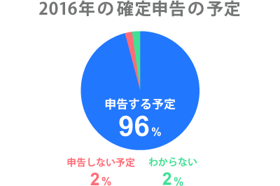 96%の個人事業主が確定申告をする予定と回答しました。「申告しない」「分からない」はそれぞれ2%ずつという結果になりました。