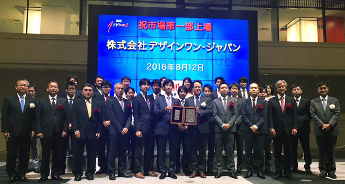 2016年8月12日をもちまして、当社株式を東京証券取引所マザース市場から市場第一部へ市場変更いたしました。 これもひとえに、多くの関係者の皆様方からの温かいご支援の賜物と、心より感謝申し上げます。引き続き、当社のミッション「世界を、活性化する。」のさらなる実現を目指してまいります。 今後も変わらぬご厚誼を賜りますよう、何卒宜しくお願い申し上げます。 株式会社デザインワン・ジャパン代表取締役 高畠 靖雄 会社概要 アクセス
