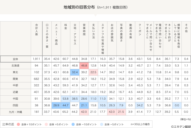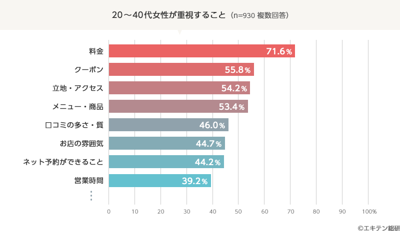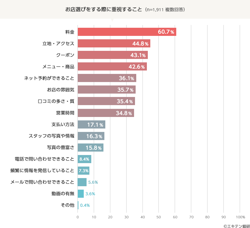 お店を選ぶ際の重視点について調査を実施(エキテン総研)