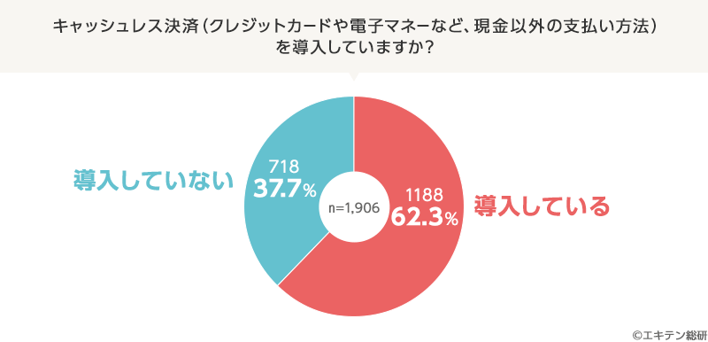 中小事業者において、クレジットカードやQRコード、電子マネーなど現金以外の支払い方法を導入している店舗はすでに全体の6割を上回ります。