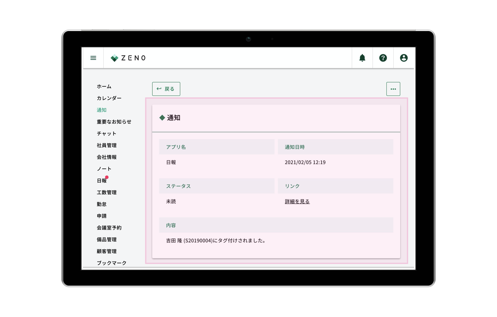 申請の承認依頼や日報に対していいねが投稿されるとZENO内で通知されます