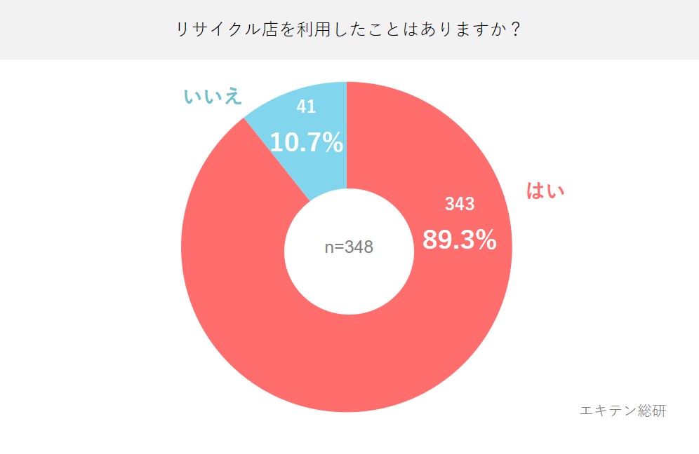 リサイクル店の利用経験をたずねると、約9割のユーザーが「利用したことがある」と回答しました。