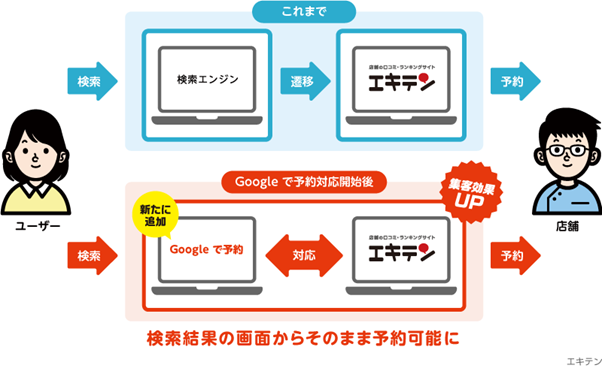 店舗の口コミ・ランキングサイト「エキテン」が「Google で予約」に対応を開始
